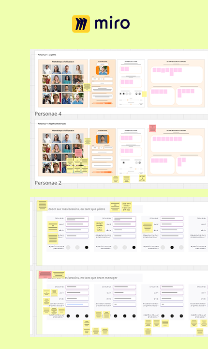 Après avoir collecté l’ensemble de ces informations, nous préparons un atelier spécifique sur la construction des persona, sur la base d’un tableau blanc Miro. Nous avons conçu cet atelier en plusieurs étapes nous permettant de bien structurer notre réflexion et d’avancer avec vous au fur et à mesure dans la construction des personae de votre projet numérique.