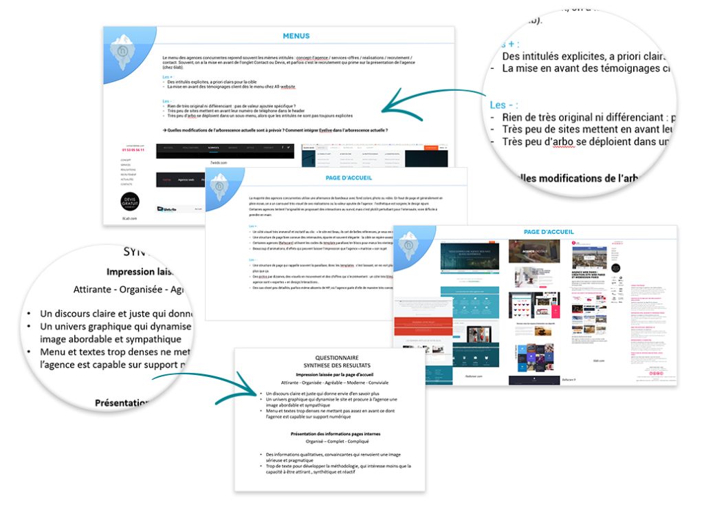 Cette phase d’analyses et d’audits a été essentielle pour nous aider à débuter le projet. D’une part, cela nous a permis de réaliser une veille sur notre secteur et ainsi de déterminer ce qui faisait notre différence (et en ça les témoignages de nos clients ont été essentiel) et donc notre véritable valeur ajoutée par rapport aux agences concurrentes. D’autre part, cela nous a permis de soulever les points forts et les points faibles de notre site et rechercher des pistes d’améliorations sur ces derniers.