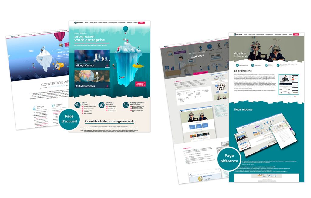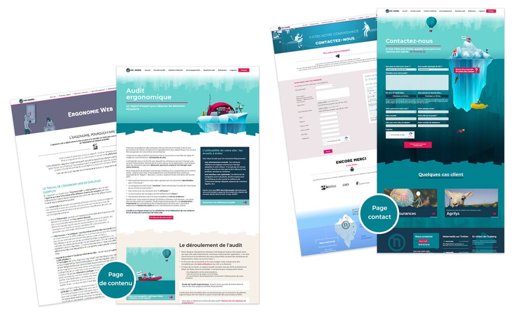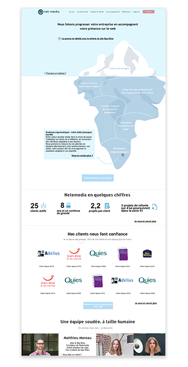 Une refonte graphique initié en 2015, avait posé les bases de l’iceberg, une métaphore de notre méthodologie, qui vise à mettre en évidence tous les aspects cachés de la création d’un site Internet alors qu’ils représentent pourtant la plus grande part du projet et conditionnent sa réussite. Mais cette refonte n’avait pas été poussé au bout sur le site : de ce fait, il cohabitait désormais deux chartes graphiques différentes.