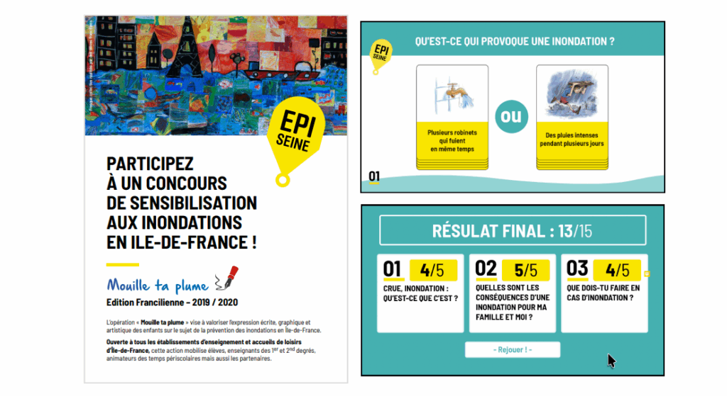 Dans ce dispositif digital, on met en scène la crue et les risques selon son adresse (Module EgoSeine), on accède à des contenus adaptés, on s’engage concrètement pour soutenir l’action terrain.